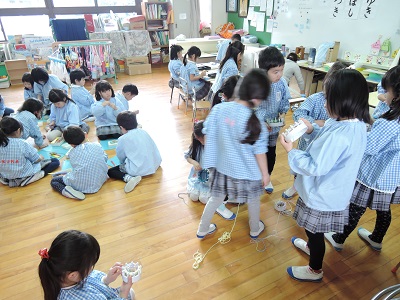 寒いですね 2017.01.11 園だより 週末に向けて、今日から気温がグッと下がってきましたね。 子どもたちは、寒くても園庭で元気に遊んでいます。 園では、凧を製作し始めたり、コマ回しをしたりと、この 季節の遊びを楽しんでいます。
