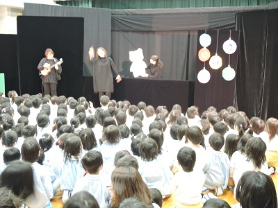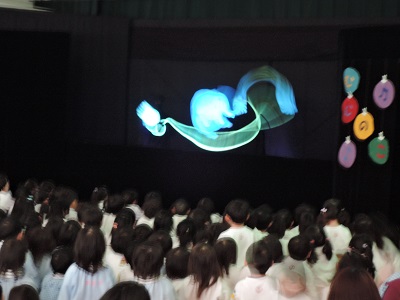 園内観劇「おさんぽ・ぽ・ぽ・ぽ」 2017.02.28 園だより 今日は、子どもたちが楽しみにしていた園内観劇。 劇団むむのこさんによる、人形劇とブラックシアターを見ました。 楽しくて、幻想的でファンタジックな世界に子どもたちも 引き込まれていました。 とても、すてきな公演でした。