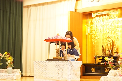 また、あるクラスは甘茶をお釈迦様に4回かけて