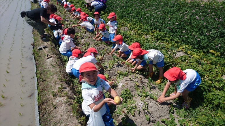 じゃがいも掘り 2017.06.19 園だより 今日は年長組さんがじゃがいも掘りへでかけてきました。 おいしそうなじゃがいもがたくさん収穫できました。 みんなで、フライドポテトを食べるのが今から楽しみですね。
