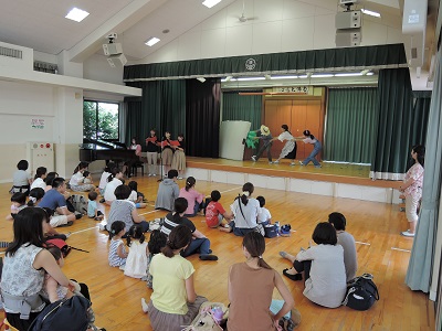 9月しろろんクラブ 2017.09.02 しろろんくらぶ 今日のしろろんクラブは「お話の玉手箱」でした。 おおきなかぶのオペレッタ、大型プロジェクターを使って 3匹のやぎのがらがらどん、おへそのあなを見ました。