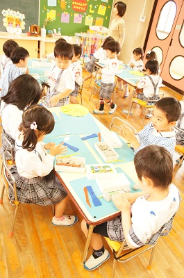 ▽食堂の方からのお話を聞いて、皆で「いただきます!」