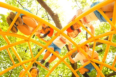 ▽ジャングルジムの頂上の景色。「幼稚園みえるかな?」