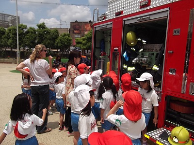消防車のことなどたくさんお話を聞いて、質問にも答えてもらいました。