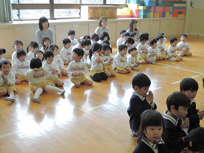 3学期終了 2018.03.23 園だより 今日で今学期も終了しました。明日から春休みですね。 進級を心待ちにしている子どもたち。 4月も元気に登園して来て下さいね。 進級式・入園式でお待ちしています。