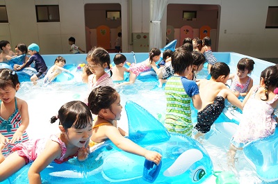 ▽今日からプールには新しいおもちゃが仲間入りしました。
