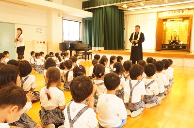 子どもたちの様子 2014.07.18 園だより 今日はほし、年少、年中さんの終業式でした。 園長先生はみほとけ様やみんなにありがとうの気持ちを忘れず、 夏休みのお約束をしっかり守ってまた夏季保育に 元気な顔を見せてね、とお話をして下さいました。 長い夏休み、からだに気を付けて楽しく過ごして下さいね。