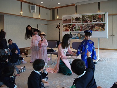 国際交流会館へ行ってきました 2019.02.14 園だより 今日は年長組さんが参観日の一環で、国際交流会館 へ行ってきました。 今回の先生はベトナム人の先生でした。 きれいな民族衣装アオザイを見せて頂き、子ども用 も試着させていただきました。