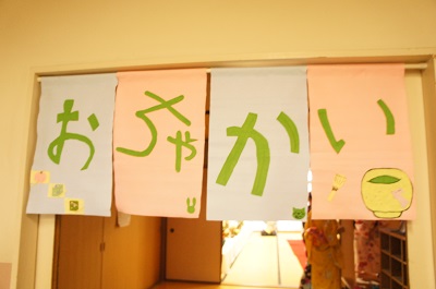 年長さんは隣の高校の茶道室でお茶会に参加していました。