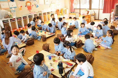 子どもたちの様子 2014.11.10 園だより 今日は日差しが暖かく、お外でも「あついわ~」 と言いながらも、気持ちよさそうに走って遊ぶ みんなの姿がみられました。^^ お部屋では、お家から持ってきた廃材で 色々な物を作ったり、様々な技法で絵をかいたりと 楽しく活動をしています。 ▽年少さんと年中さんは一緒にご飯を食べていました☆