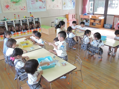 園庭のタイサンボク 2015.05.29 園だより 園庭のタイサンボクも少しずつ大きくなってきました。 平成25年度卒園児の子どもたちが創立60周年記念の卒園記念 として植樹してくれたものです。 通常タイサンボクは6月に開花するそうです。今年は開花して くれるでしょうか。 月曜日から6月ですね。衣替え。子どもたちも毎日体操登園になり、 夏はもう、すぐそこまできているようです。