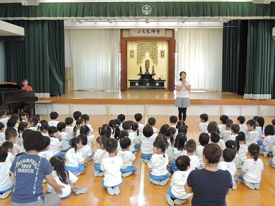 虫の声 2015.08.27 園だより 朝晩少しですが今日、昨日は過ごしやすいですね。 園庭では朝から虫の鳴き声が・・・。秋を感じる虫のこえ。 朝の園庭では、子どもたちもその声につられて、花壇の 前で探している様子も見られました。 年少組会集