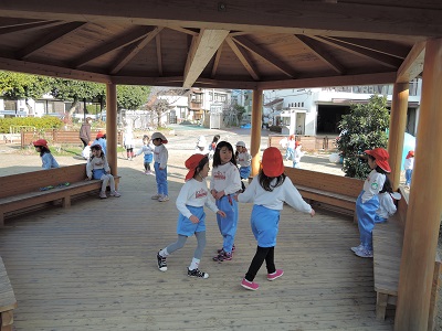 寒さ本番ですね 2016.01.21 園だより 昨日は雪のため、休園となりました。 今日は雪は降っていないものの、とても寒い一日でした。 気温が低いと、お部屋に閉じこもりがちですが、園では 外に出て、なわとび、リレーなどをして風に負けること なく元気に体を動かして、遊んでいました。